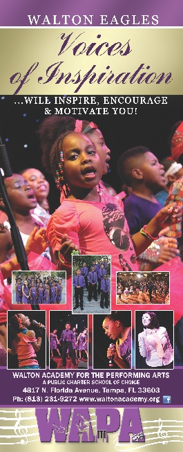 Voices of Inspiration derived from the talented and aspiring elementary students at the Walton Academy for the Performing Arts, a public charter school of choice in Tampa, FL. Our mission for these young performers is to inspire, encourage and motivate our audiences.For more than 10 years, the students at Walton Academy has pleased the hearts and minds of many community organizations and groups in the state of Florida. These “Little Ambassadors with Eagles’ Wings” have given choral and theatrical performances at statewide conferences, senior citizens facilities, universities, hospitals and community festivals. We are currently working on our 2nd CD & DVD Recording Project to be released this year.